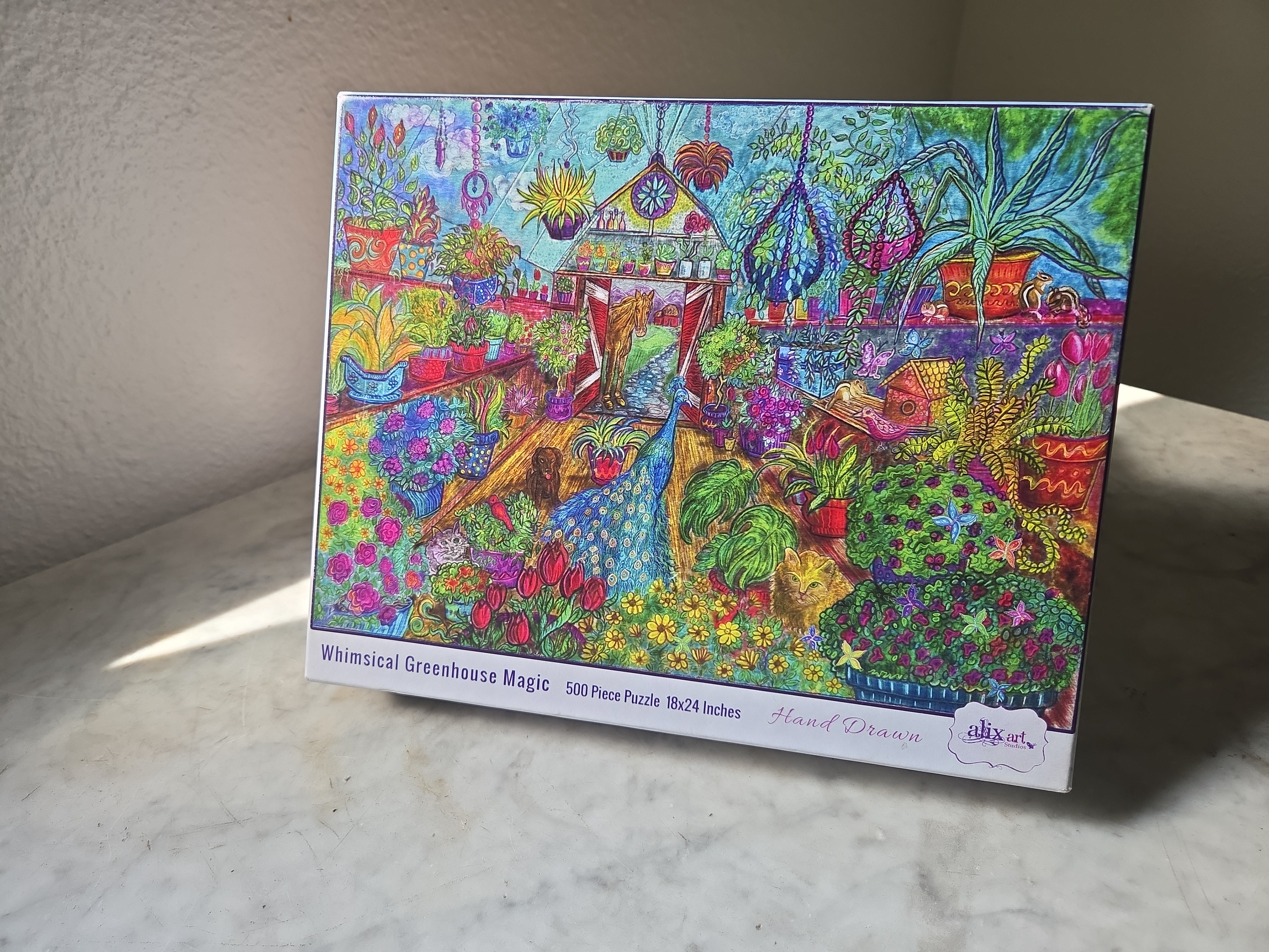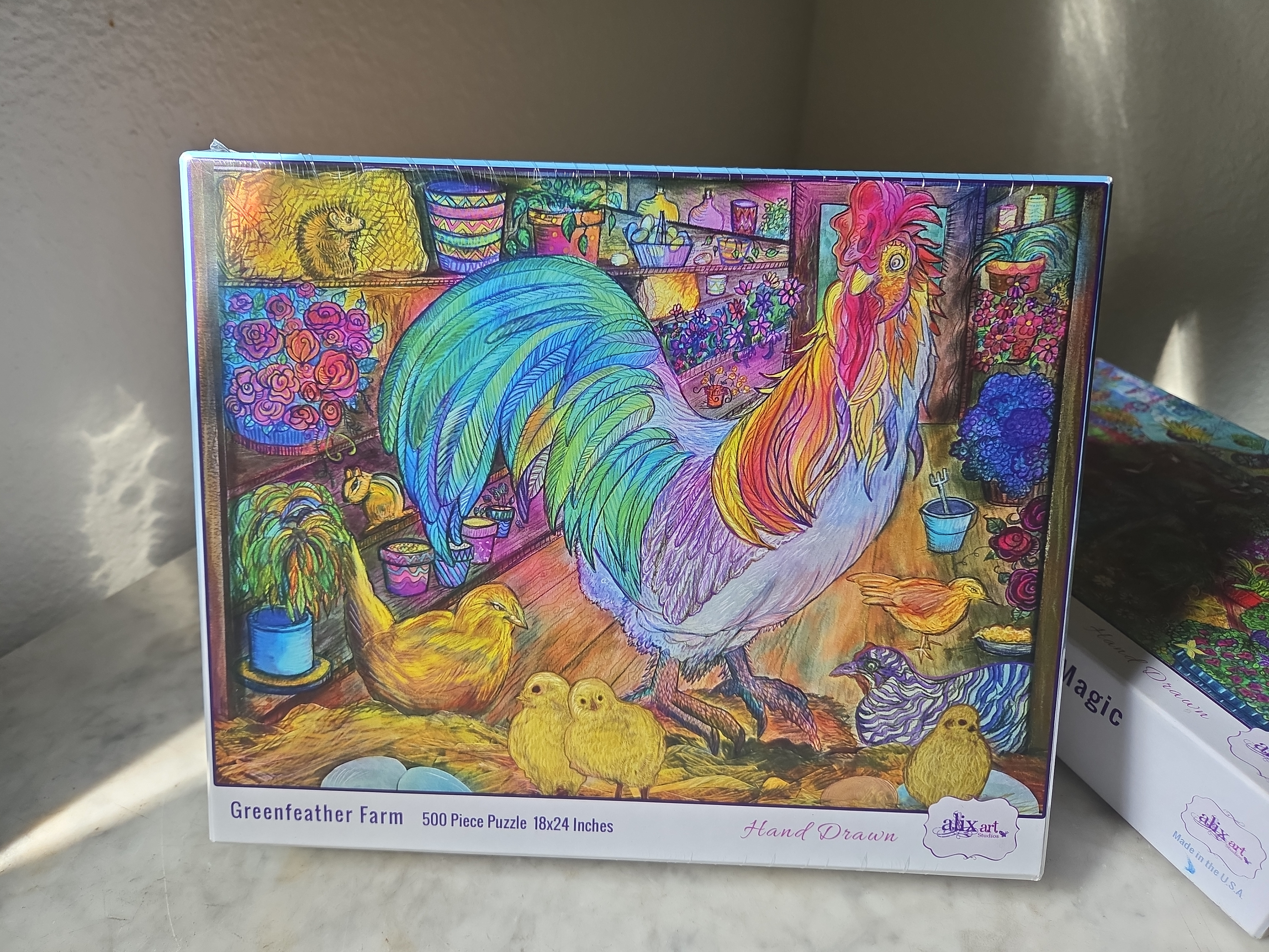 The best place to get my originals and self-published artist puzzles is in person at an art showing, Open Studios event or gallery event.